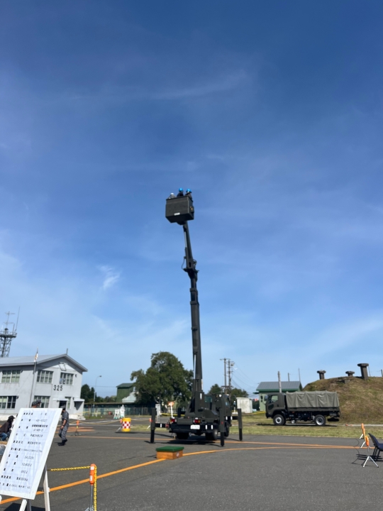 その他、千歳基地で活躍している救難消防車や高所作業車も展示されており、高所作業車に乗せてもらいましたが、思った以上の高さに怯えたのはここだけの話しです、、、
